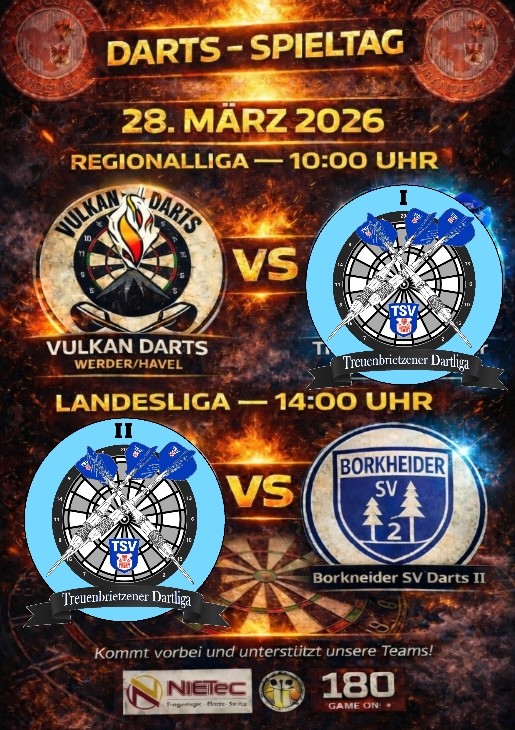 Nach dem großen Erfolg des ersten Sabinchencup of Darts am 24.03.2018 entstand die Idee eine eigene Dartliga in Treuenbrietzen zu gründen. Die meisten Spieler des Turnier haben sofort zugesagt und somit begann die Planung der ersten Saison 2018.Am 1.7.2021 traten die Mitglieder der Dartliga dem TSV Treuenbrietzen als eigene Abteilung bei und haben aktuell 24 Mitglieder.Jeder der Freude am Dartsport hat,ist bei uns willkommen und darf mitmachen.