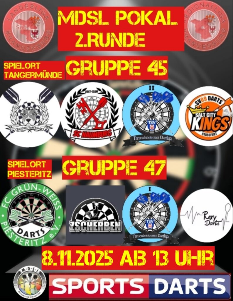 Am kommenden Samstag treten beide Teams der Treuenbrietzener Dartliga in der 2.Runde im Landespokal der MDSL an.