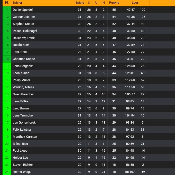| Finale Dartliga 2024 | Robin Voigt – Gunnar Leistner 7-4 |
